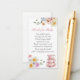 Une carte d'insertion de demande de livre pour le baby shower. Avec des fleurs d'aquarelle et des tasses avec poème : "UNE PETITE DEMANDE, NOUS ESPÉRONS PAS TROP DIFFICILE D'APPORTER UN LIVRE AU LIEU D'UNE CARTE, ILS CHERCHERCHERONT LE LIVRE, BIEN AIMÉ OU NOUVEAU S'IL VOUS PLAÎT SIGNER L'INTÉRIEUR AVEC UN MESSAGE DE VOUS!"