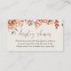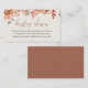 Faites votre baby shower d'automne lisse et élégant avec cette carte Display Shower boîtier de Redwood & Vine Design Co. Doté d'un élégant script en terre cuite et de fleurs d'automne, cet insert invitations invités à apporter leurs cadeaux déballés pour un affichage facile. Une touche soignée pour les baby showers modernes, rustiques ou saisonniers.