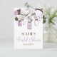 Un très féminin et de jolies illustrations de pots de maçon lilas et brun, de coeurs, de feuillage et de variété de fleurs. C'est une carte d'enceinte parfaite pour une douche nuptiale printanière ou automnale. Ce design est disponible en différentes couleurs.