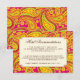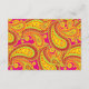 Un design cachemire rétro amusant et coloré sur l'avant et le dos dans un jeu de couleurs de rouge, orange, or et fuschia brillant - fait pour une grande carte d'insertion de fête et de coordonnées avec notre invitation à la fête correspondante.