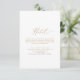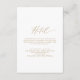 Cette délicate carte d'enceinte d'hôtel en calligraphie or est parfaite pour un mariage moderne. Le design minimaliste romantique présente une belle et élégante typographie de champagne jaune doré sur un arrière - plan blanc au look épuré et simple.