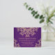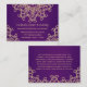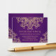 Un joli bijou mauve améthyste prune et or mariage ou toute autre carte spéciale d'enceinte de réception avec un sari ornemental d'inspiration indienne exotique comme un motif avec un lotus et un design de sunburst fleuri. Cette belle et élégante carte moderne haut de gamme et luxe de style indien est parfaite pour toute occasion formelle avec une soirée orientale indonésienne marocaine arabe ou le thème aladdin. Design © Chrissy H. Studios, LLC. Tous droits réservés.