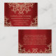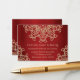 Un magnifique grenat à bijoux et un mariage rouge et or rubis ou toute autre carte d'enceinte de réception spéciale avec un sari ornemental d'inspiration indienne exotique comme un motif avec un lotus et un coucher de soleil fleuri. Cette belle et élégante carte moderne haut de gamme et luxe de style indien est parfaite pour toute occasion formelle avec une soirée orientale indonésienne marocaine arabe ou le thème aladdin. Design © Chrissy H. Studios, LLC. Tous droits réservés.