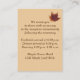 Cette carte d'enceinte de mariage d'automne rustique aux couleurs d'automne orange, rouge, or et marron contient des images de trois feuilles d'érable séchés avec un arc à ficelle IMPRIMÉ et un ruban imprimé violet d'aubergine foncée, ainsi qu'un arrière - plan de sac à burlap FAUX avec un aspect de papier brûlé vieilli qui correspond au faire-part de mariage ci-dessous. Il est parfait pour un mariage campagnard rustique décontracté ou informel. Ajoutez les détails de votre réception ou d'autres informations, ou modifiez le texte pour en faire une carte de registre cadeau, une carte d'hébergement, une carte de site Web mariage ou une carte de puits de souhaits. Parfait pour un mariage campagnard rustique décontracté ou informel. Il est présenté ici sur papier de base. ****VEUILLEZ NOTER que tout va s'imprimer tel qu'il apparaît sur votre écran, donc si vous avez des problèmes de typographie, d'alignement ou de dimensionnement, veuillez me contacter pour obtenir de l'aide AVANT de commander. Si vous avez besoin d'autres articles correspondants, envoyez un courriel à niteowlstudio@gmail.com.