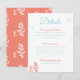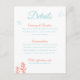 Remettez à vos invités tous les autres détails spécifiques de votre mariage avec ces Cartes de fermeture Turquoise Beach. Faites-le facilement à votre avis, c'est la meilleure façon de communiquer avec eux. Cette carte présente une illustration sous la mer, des coraux et des bulles. C'est la carte Coral assorti de mon "Seahorse Mariage Suite", parfait pour un mariage sur la plage, la côte, nautique ou destination. Personnalisez cette carte avec vos propres couleurs et informations.