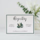 Entrez dans l'enchantement de la nature grâce à notre carte d'enregistrement Rustique pour Mariage forestier. Cette collection saisit la beauté intemporelle d'une fête des bois, avec son charme rustique et son élégance naturelle. Des invitations à l'assortiment stationnaire, chaque pièce est pensée pour apporter la magie sereine de la forêt à votre jour de mariage.