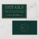 Cette carte Emerald and Gold Encape d'inspiration Art Déco est la meilleure façon de faire connaître aux clients des informations complémentaires et comment envoyer des réponses à votre mariage. Personnalisez-le facilement avec vos informations de mariage ou customisez-le pour ajouter des détails supplémentaires qui sont importants pour votre journée. Quoi que vous ayez besoin de communiquer avec vos invités, cette carte est la façon parfaite. N'oubliez pas de consulter les invitations de coordination et plus dans la collection Mariage Emerald and Gold Modern Art Déco.