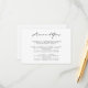 La carte d'hébergement Black and White offre un moyen élégant et sophistiqué de fournir des informations importantes sur les logements pour votre événement. Avec son design noir et blanc épuré, il complète tout thème mariage ou occasion spéciale. Cette carte d'enceinte vous permet de partager des détails tels que les options d'hôtel, les informations sur les blocs de chambres et toutes les instructions spéciales pour vos invités. Conçu pour coordonner avec pour la collection de Faire-part de mariage "Modern Classic". Pour modifier les détails, cliquez sur "Personnaliser". Afficher le lien de collection sur cette page pour voir tous les éléments correspondants dans cette belle conception