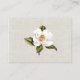 Elégante carte d'enceinte de mariage faite dans un look de linge d'ivoire, à l'avant et à l'arrière, avec une jolie fleur de magnolia blanche, sur le dos. Le texte noir, sur le devant, est prêt à être personnalisé pour votre réception de mariage. Jolie addition à nos produits et Faire-part de mariage chic Southern Belle Magnolia.
