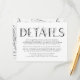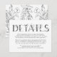 Carte de boîtier Mariage Formal Black Floral Letters pour plus de détails - un dessin à main floral détail design papeterie mariage avec dessin à fleurs embellissant le mot 'DETAILS', avec texte manuscrit pour les noms.