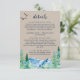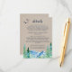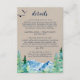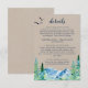 Cette carte d'enceinte de détail kraft Rocky Mountain mariage est parfaite pour un mariage extérieur. Le design présente un paysage sauvage peint en bleu et vert avec des pins d'aquarelle, des oiseaux et des montagnes sur un arrière - plan en papier kraft léger. Veuillez noter que ceci n'est pas imprimé sur du papier kraft réel. C'est un graphisme de haute qualité fait pour ressembler à du papier kraft.