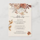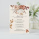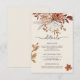 Cette élégante carte d'enceinte mariage d'automne présente des fleurs d'aquarelle orange brûlée et en terre cuite, des roses de jardin boho et des calligraphies manuscrites. Parfait pour inclure la réception, l'hébergement ou les détails du site Web dans une suite mariage de automne moderne, romantique et rustique.