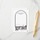 Célébrez votre grande réussite avec notre carte de boîtier pour diplômés en Arc Noir Moderne! Cette carte minimaliste présente un design d'arc contemporain et une GRAD audacieuse. Personnalisez-le et glissez-le avec votre invitation à la fête de remise des diplômes ou faire-part à remplir par vos amis et votre famille.