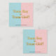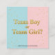 Ajoutez une touche de finition parfaite à vos invitations révélées par le genre avec cette carte carré chic ! 💙 💖 Conçu dans un style scintillant avec des moitiés rose et bleu pastel, texte doré brillant lisant "Team Boy ou Team Girl ?", et une saupoudrée de confettis, cette carte est à la fois élégante et amusante. Le dos est doté d'un mélange d'aquarelle rose et bleu doux avec un petit coeur doré — doux et minimal pour un look poli. Avec une taille de 2,5 po x 2,5 po, il est idéal pour inclure des détails supplémentaires comme des informations RSVP, des notes de registre, un code vestimentaire ou même pour l'utilisation comme cartes de vote d'équipe pendant votre soirée révélatrice de sexe.