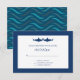 Le mariage parfait rsvp pour n'importe quel couple amoureux des requins. Arrière - plan bleu marine classique avec silhouette de requin bleu marine. Le dos du rsvp a un motif à vague moderne.