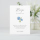 Carte de boîtier RSVP hydrangea bleu chic et élégant, avec un design floral magnifique, avec vos noms, la date de l'événement et votre adresse de site Web. Police contemporaine en gris foncé et crée une élégance élégante. Personnalisez-le pour le rendre unique .