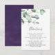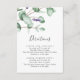 Cette carte d'enceinte à direction de lavande rustique est parfaite pour un mariage extérieur simple et élégant. Le design floral présente des feuilles d'eucalyptus aquarelle et de la verdure avec des sprigs de fleurs sauvages violets.