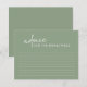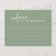 La Sage Minimalist Script Fête des mariées Advice Card est un complément parfait à toute douche nuptiale moderne. Avec son design simple et élégant et ses lettres de script modernes, cette carte de conseil est à la fois élégante et fonctionnelle. Vos invités adoreront partager leurs souhaits et conseils pour les futurs mariés sur cette belle carte couleur sage.