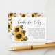 Carte de demande de livre pour baby shower rustique avec une illustration aquarelle de tournesols jaunes et baby's breath. La carte demande aux invités d'apporter un livre pour enfants neuf ou d'occasion au lieu d'une carte.