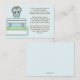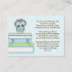 Une jolie petite chouette bleue perche au-dessus d'une pile de livres bleus et verts sur un bébé arrière - plan bleu doux dans cette demande de livre amusant souhaitant bonne carte. Un poème charmant demande aux clients d'apporter un livre pour le futur bébé pour commencer la nouvelle maman avec une bibliothèque de livres pour enfants bien-aimés. Il suffit d'insérer cette carte sucrée dans l'enveloppe du baby shower, et vos invités sauront ce qui est nécessaire pour commencer bébé sur le chemin de la lecture.