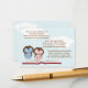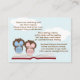 Des hiboux jumeaux perchés au-dessus d'un livre ouvert sur un arrière - plan bleu ciel. Un charmant poème demande aux clients d'apporter un livre pour que les bébés commencent la nouvelle maman avec une bibliothèque de livres pour enfants bien-aimés. Il suffit d'insérer cette carte sucrée dans l'enveloppe du baby shower, et vos invités sauront ce qui est nécessaire pour commencer bébé sur le chemin de la lecture.