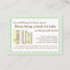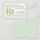 Un poème charmant demande aux clients d'apporter un livre pour le futur bébé pour commencer la nouvelle maman avec une bibliothèque de livres pour enfants bien-aimés. Il suffit d'insérer cette carte douce dans l'enveloppe du baby shower. Le jeu de couleurs neutre vert menthe, jaune et blanc avec une jolie petite rangée de livres assortis fait un design parfait pour coordonner avec à peu près n'importe quelle invitation de baby shower vert ou jaune aussi.