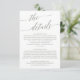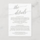 Cette élégante carte de détails de calligraphie verte sauge est parfaite pour un mariage simple. Le design neutre présente une carte minimaliste décorée de typographie romantique et fantaisiste.