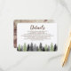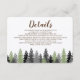 Cette carte de détails pour une faire-part de mariage présente un design à feuillage persistant de pin forestier et un panneau en bois rustique. Personnalisez avec vos informations d'événement pour créer une invitation de nature à impressionner vos invités.