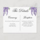 De délicates vignes de glycine ornent cette carte de détails élégants de teintes romantiques de lavande et de verdure douce, offrant à vos invités les informations essentielles avec une touche de beauté botanique. Parfaite pour partager les informations sur l'hébergement, les directions, le code vestimentaire ou le site web du mariage, cette carte se marie parfaitement avec une suite de mariage inspirée des fleurs ou du jardin. Un mélange raffiné de praticité et de charme, conçu pour élever votre papeterie avec une grâce intemporelle.