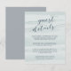 Cette petite carte vous permet de partager les détails de la clé avec vos invités mariages. Conçues pour correspondre à notre collection de mariages Chiffon en mer d'eau pâle, les cartes comportent un arrière - plan de lavage à l'aquarelle dans les tons de couleur vert seaglass. Vous vous demandez quelles informations inclure sur un encart faire-part de mariage ? Prenez en compte des détails comme l'hébergement à l'hôtel, les codes de groupe, le transport, l'itinéraire, les informations sur la réception de bienvenue et votre URL du site Web mariage. Vous pouvez même télécharger une carte vers l'envers à l'aide de la fonction Personnaliser.