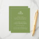 Cette carte de détails de mariage de jardin vert est un complément raffiné et moderne à votre suite d'invitation aux fleurs sauvages. Avec une riche toile de fond verte de jardin et une typographie élégante, elle allie sophistication minimaliste et romance estivale européenne. Parfaite pour partager les informations de réception, d'hébergement et de voyage, elle crée une expérience de papeterie soignée et cohérente. Conçue pour les couples qui aiment l'élégance botanique avec une touche contemporaine. Associez-la à des invitations et des cartes de réponse assorties pour compléter votre suite.