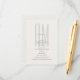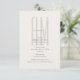 Carte de détails de mariage élégante et minimaliste avec un design de monogramme architectural moderne.