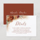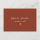 Complétez votre suite d'invitation avec une sophistication chaleureuse et terreuse en utilisant la carte de détails de mariage bohème à calligraphie élégante en terracotta. Conçue pour les célébrations modernes bohèmes et rustiques-chic, cette carte de détails comporte des tons de terracotta riches associés à une typographie calligraphiée gracieuse. La palette de couleurs chaudes et bronzées évoque une romance désertique et une élégance naturelle, ce qui la rend parfaite pour les mariages en plein air, les lieux de vignoble, les cérémonies de jardin et les célébrations inspirées du sud-ouest. Cette carte de détails de mariage est idéale pour partager des informations importantes telles que : • Site web du mariage • Instructions de RSVP • Détails d'hébergement • Code vestimentaire • Informations sur le transport • Programme des événements du week-end. La mise en page épurée garde tout organisé et facile à lire tout en conservant une esthétique douce et romantique. Elle se coordonne magnifiquement avec les suites d'invitation de mariage bohèmes, terracotta, orange brûlée et neutres pour une présentation cohérente et soignée. Entièrement personnalisable avec votre formulation personnalisée, cet enc