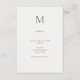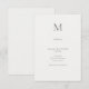 Carte de détails de mariage moderne présentant un monogramme initial unique raffiné et une typographie minimaliste et épurée. Conçue pour les cérémonies civiles, les mariages à la mairie et les célébrations juridiques contemporaines, cette carte de détails présente les informations essentielles de l'événement avec clarté et élégance.