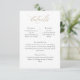 Cette carte de détails de mariage à la calligraphie dorée et élégante est idéale pour un mariage époustouflant. Le design simple met en valeur une carte minimaliste ornée d'une typographie charmante et fantaisiste de couleur dorée. Compilez facilement votre liste d'invités de mariage et vos demandes de chansons pour la piste de danse simultanément ! Cette carte d'information demande efficacement aux invités s'ils participeront à votre mariage et quelle chanson les fera danser.