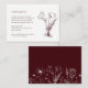 Complétez votre suite de mariage avec cette carte de détails de mariage élégante florale bordeaux. Conçue avec de riches fleurs bordeaux et une verdure douce, cette carte se coordonne parfaitement avec votre invitation assortie. Ajoutez des informations importantes telles que le programme, les hébergements, les directions ou votre site web de mariage. Entièrement personnalisable pour s'adapter à votre événement et imprimé sur du papier cartonné premium pour un look cohérent et élégant.