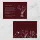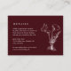 Complétez votre suite de mariage avec cette carte de détails de mariage élégante florale bordeaux. Conçue avec de riches fleurs bordeaux et une verdure douce, cette carte se coordonne parfaitement avec votre invitation assortie. Ajoutez des informations importantes telles que le programme, les hébergements, les directions ou votre site web de mariage. Entièrement personnalisable pour s'adapter à votre événement et imprimé sur du papier de haute qualité pour un look cohérent et élégant.