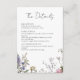 Fournissez à vos invités toutes les informations essentielles avec style avec cette carte de détails de mariage floral aux fleurs sauvages rustiques ! Avec des illustrations délicates de fleurs sauvages et un design rustique, cette carte peut inclure les directions du lieu, l'hébergement et les détails du programme. Parfait pour les mariages bohèmes, de jardin ou champêtres, ces cartes personnalisées complètent votre papeterie florale et rustique tout en gardant les invités informés avec élégance.