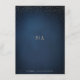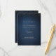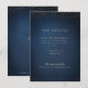 Faux paillettes dorées sur fond bleu marine foncé et monogramme sophistiqué du couple au verso, Simple et élégant. Superbe carte de détails de mariage pour un mariage classique moderne et un mariage formel.