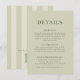 Élégamment moderne et intemporel, cette carte de détails de mariage rayée donne le ton parfait pour votre jour spécial. Avec des rayures verticales pastel doux et un mélange raffiné de typographie serif classique et de script fluide, ce design allie simplicité et sophistication, créant une esthétique propre et gracieuse idéale pour les mariages contemporains, romantiques ou champêtres.