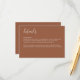 Cette carte de détails de mariage en terracotta moderne présente un design minimaliste avec une couleur terracotta terreuse et bohème et une typographie moderne et épurée. Une suite de mariage coordonnée est disponible.