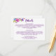 Cette carte de détails de fleurs pourpres rose et bleu poy est parfaite pour un mariage à thème fleuri. Le design est composé de magenta clair, rose, prune, violet et fleurs bleues, et d'une belle police de caractères gras. Conçu avec soin par Miriam à Fresh & Yummy Paperie. Veuillez me contacter pour toute personnalisation de conception dont vous avez besoin. Pour la coordination des articles, veuillez visiter mon magasin Zazzle :