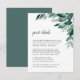 Conçues pour s'adapter à notre collection de faire-part de mariage Foliage Abondant, ces élégantes cartes d'information botanique comportent un jet d'eau de feuilles d'eucalyptus et de feuillage vert. Vous vous demandez quelles informations inclure sur un encart faire-part de mariage ? Prenez en compte des détails comme l'hébergement à l'hôtel, les codes de groupe, le transport, l'itinéraire, les informations sur la réception de bienvenue et votre URL du site Web mariage. Vous pouvez même télécharger une carte vers l'envers à l'aide de la fonction Personnaliser.