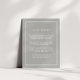 Elégante et simple, cette petite carte en gris-beige neutre vous permet de partager les détails clés avec vos clients mariages. Conçues pour correspondre à notre collection de mariages intemporels, les cartes sont dotées d'une bordure géométrique blanche et de lettres serif classiques. Vous vous demandez quelles informations inclure sur un encart faire-part de mariage ? Prenez en compte des détails comme l'hébergement à l'hôtel, les codes de groupe, le transport, l'itinéraire, les informations sur la réception de bienvenue et votre URL du site Web mariage. Vous pouvez même télécharger une carte vers l'envers à l'aide de la fonction Personnaliser.