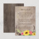 L'avant de la carte est décoré au bas de la page avec des tournesols et des cornes avec des pops de fleurs roses et de la verdure sur un arrière - plan en bois. Modifiez tout ou partie du texte. Vous pouvez ajouter tous les détails dont vous avez besoin, par exemple : informations sur la réception, événement réservé aux adultes, adresse du site Web, informations sur le registre, hébergement, code vestimentaire, bar à billets, etc. L'arrière de l'invitation a le même arrière - plan en bois aquarelle. Cette carte correspond à une collection dans mon magasin.