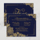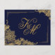 Elégante dentelle d'or sur arrière - plan de marine avec monogramme d'hébergement formel ou carte de détails.