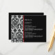 Carte de direction en damas noir avec accent rouge. Cette carte peut être utilisée comme carte de direction ou carte incluse dans vos invitations de mariage. En tant que carte incluse, elle peut contenir des informations sur les hébergements à l'hôtel, les activités prévues, les listes de mariage, les sites web de mariage et d'autres détails concernant votre événement. Invitations, Cartes RSVP, programmes de mariage, sceaux d'enveloppe et timbres assortis en damas noir disponibles dans notre boutique sur www.celebrateitweddings.com