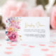 Simplifiez les cadeaux grâce à cette carte de douche à affichage Fleur sauvage violet, qui présente un beau design floral aquarelle dans des tons doux, rose et or. Parfait pour une mariée ou un baby shower moderne, cette carte informe poliment vos invités que leurs cadeaux réfléchis seront affichés, éliminant le besoin d'enveloppement. L'élégant script et la disposition propre créent un ajout élégant mais pratique à votre événement. Entièrement personnalisable, vous pouvez personnaliser le texte en fonction de vos besoins spécifiques et en faire une parfaite adéquation avec votre thème douche. *** Veuillez saisir H119 dans la recherche de magasin pour trouver tous les articles correspondants *** Ou visitez notre Collection Fleurs sauvages violets. *** Ce design de haute qualité est facile à customiser pour correspondre à vos couleurs, styles et thèmes de douche. Pour plus de personnalisation, cliquez sur le lien "Modifier en utilisant l'outil de conception" et utilisez notre outil de conception pour modifier ce modèle. Si vous avez besoin d'aide ou d'articles correspondants, veuillez me contacter.