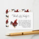 Carte de demande de baby shower à thème agricole mignonne avec l'aquarelle illustrant un coq rouge. La carte demande aux clients d'apporter un livre pour enfants neuf ou d'occasion au lieu d'une carte.