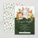 Un baby shower safari couleur eau douce avec girafe, lion & éléphant et feuilles de jungle sur un arrière - plan vert foncé. Parfait pour un baby shower pour filles, un baby shower pour garçons ou un baby shower neutre. Visitez notre boutique pour voir ce design avec des animaux individuels.